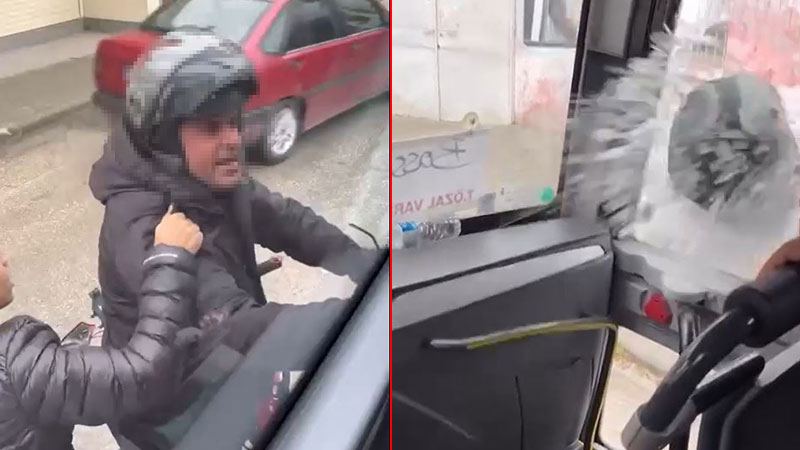 Aydın B., eline aldığı motosiklet kaskıyla servis minibüsünün camını kırdı. Yaşananlar, servis aracının içerisinde bulunan bir yolcu tarafından cep telefonu kamerasıyla kaydedildi. Görüntülerde; motosiklet sürücüsünün servisten inen yolcular ile tartıştığı sırada, 'Canımız ucuz mu?' dediği, ardından olay yerinden uzaklaştığı anlar yer aldı.