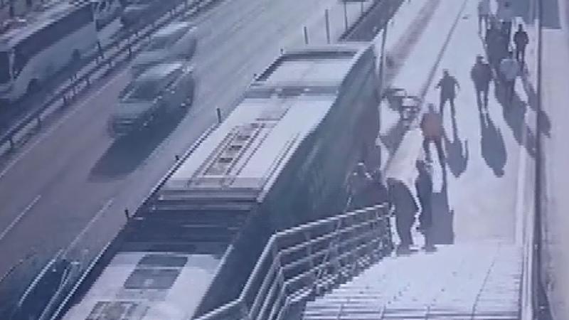 Yola düşen engelli yolcu, metrobüsün çarpmasıyla hayatını kaybetti; kaza kamerada
