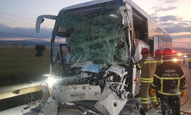 Uşak'ta, yolcu otobüsü kamyona arkadan çarptı. Kazada, otobüs şoförü ile yardımcı şoför hayatını kaybetti, 18 yolcu da yaralandı.