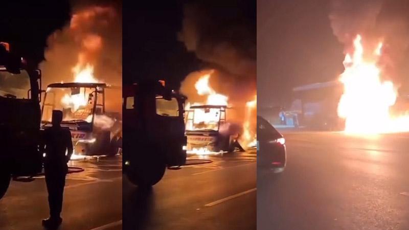 Diyarbakır merkezli bir firmaya ait yolcu otobüsü, Irak'ın Erbil kentinden Türkiye'ye dönerken alev aldı. O anlar, güvenlik kamerasına yansıdı.