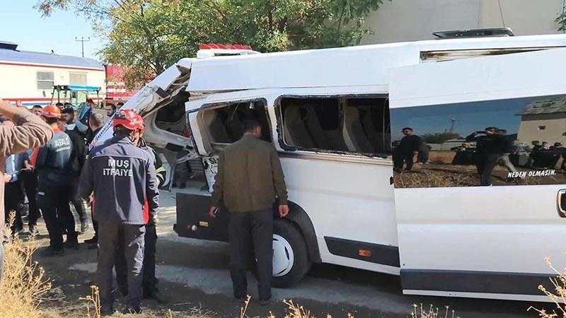 Kaza, Yeşilyurt Mahallesi Hemgeçit mevkiinde meydana geldi. Yolcu treni, hemzemin geçitte öğrenci servis minibüsüne çarptı. Savrulan serviste bulunan 17 öğrenci hafif yaralandı. İhbar üzerine olay yerine sağlık, polis ve itfaiye ekipleri sevk edildi. Yaralı öğrenciler, ambulanslarla Muş Devlet Hastanesi’ne kaldırılarak tedavi altına alındı.