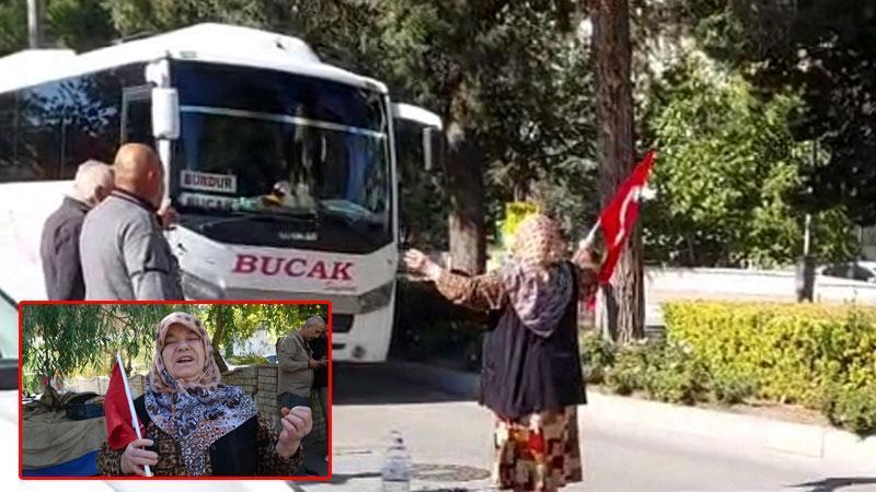 Burdur'da Şerife Özbek (75), İsrail askerlerinin Sumud filosuna yaptığı baskını, elinde Türk bayrağıyla yol keserek protesto etti. Araçların geçişine bir süre izin vermeyen Özbek, "Sabaha kadar onlar için dua ettim. Artık yeter" dedi.