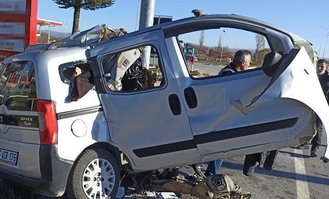 Yön levhasına çarpan hafif ticari araç parçalandı; sürücü ağır yaralı