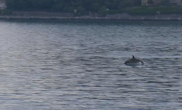 İstinye Sahil'de sabahın ilk ışıklarında yunuslar görüldü.