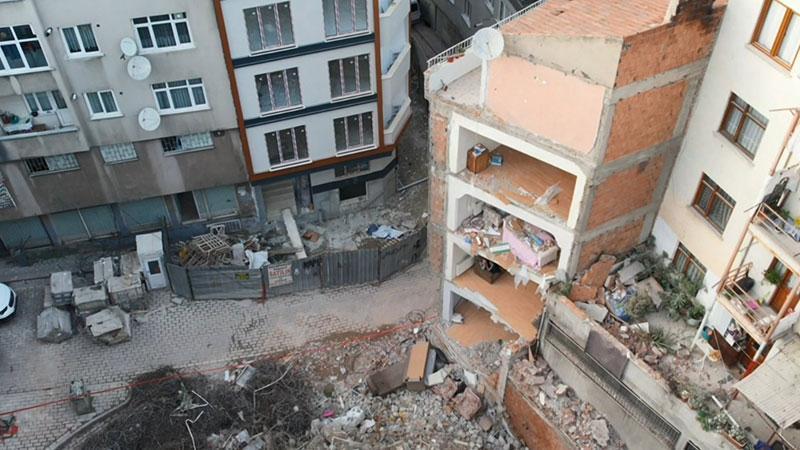 Zeytinburnu'nda 4 katlı bina yıkıldı; bitişikteki apartman duvarsız kaldı