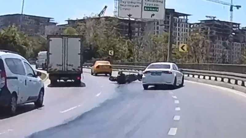 Zeytinburnu’nda motosikletiyle seyir halinde olan Halil İbrahim Elgül, akaryakıt dökülen yolda kayıp düştü. Elgül arkasında ilerleyen otomobil sürücüsünün refkleksi sayesinde ölümden saniyelerle kurtuldu. O anlar başka bir motosiklet sürücüsünün kask kamerasına yansıdı.