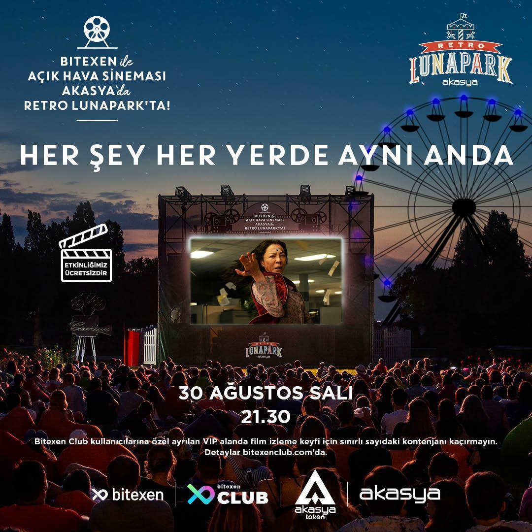 Akasya Açık Hava Sineması, Bitexen ana sponsorluğunda açık hava film günleri düzenliyor. Etkinliğin ikinci haftasında “Her Şey Her Yerde Aynı Anda”, “Yaşamaya Bak” ve “Batı Yakası’nın Hikayesi” filmleri seyirciyle buluşacak.