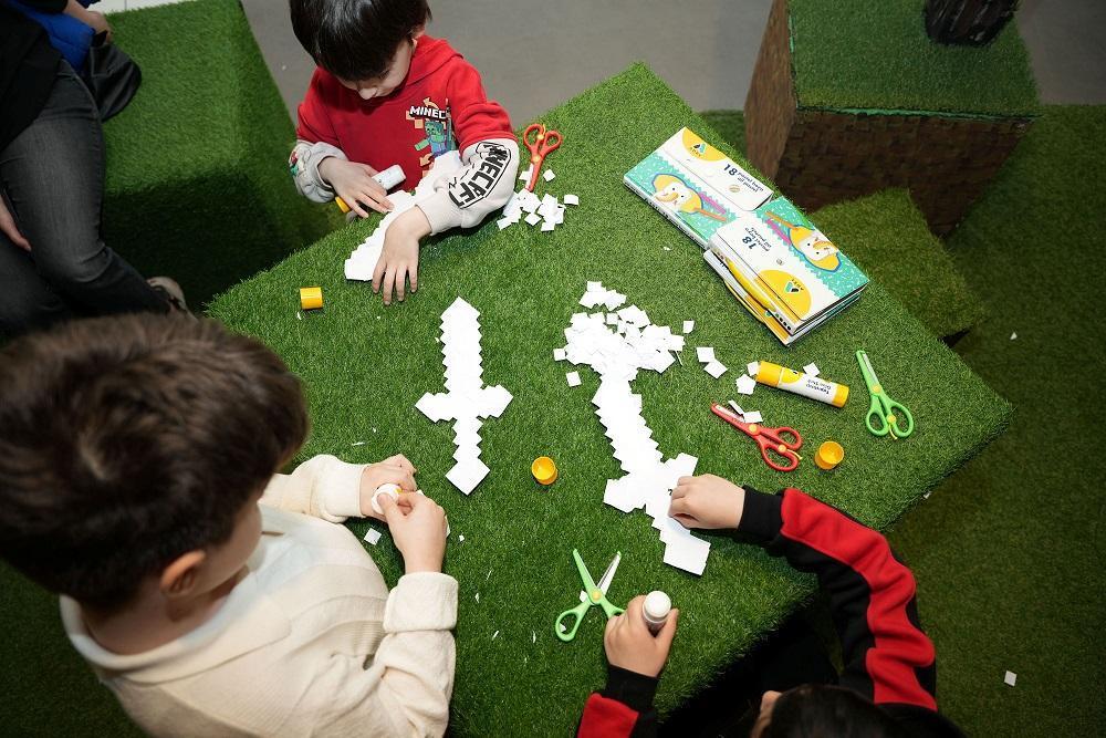 Bugün düzenlenen Minecraft Elmas Kılıç ve Kazma Atölyesinde ise çocuklar karton malzemelerle kendi elmas kılıçlarını ve kazmalarını üreterek, özgün aksesuarlarını evlerine götürecek.