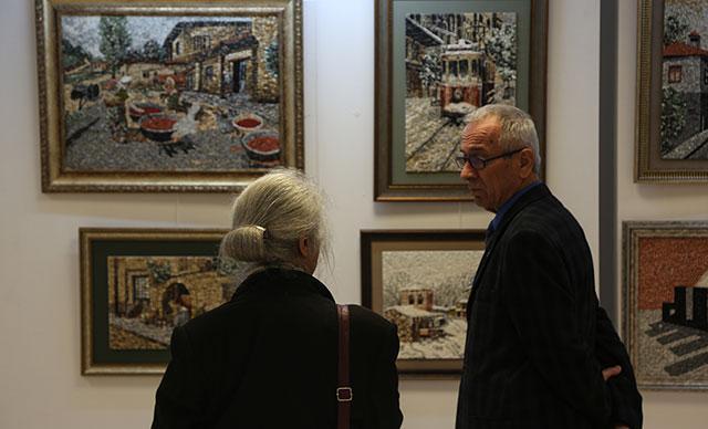 TSKM’deki sergide, 60 yılını çakıl taşıyla resim yapmaya adayan, bu sanatın Türkiye’deki tek usta öğreticisi, ressam Fehim İbrahimhakkıoğlu ve öğrencilerinin eserleri, sanatseverlerin beğenisine sunuldu.