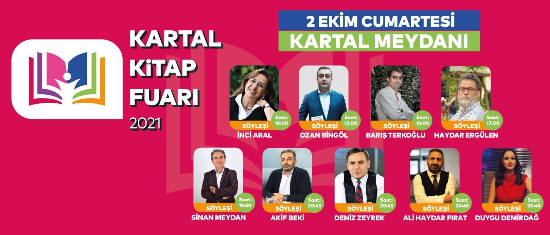 Kartal Belediye Başkanı Gökhan Yüksel’in, Kartal’ı sanat ve kültürün merkezi yapma hedefi ile hayata geçirdiği fuarda 2 Ekim Cumartesi günü; Gülşen Ünüvar, İnci Aral, Ozan Bingöl, Barış Terkoğlu, Haydar Ergülen, M. Özgür Mutlu, Nurhan Suerdem, Mevsim Yenice, Hande Ortaç, Engin Türkgeldi, Sinan Meydan, Akif Beki, Deniz Zeyrek, Ali Haydar Fırat ve Duygu Demirdağ okuyucularla bir araya gelecek.