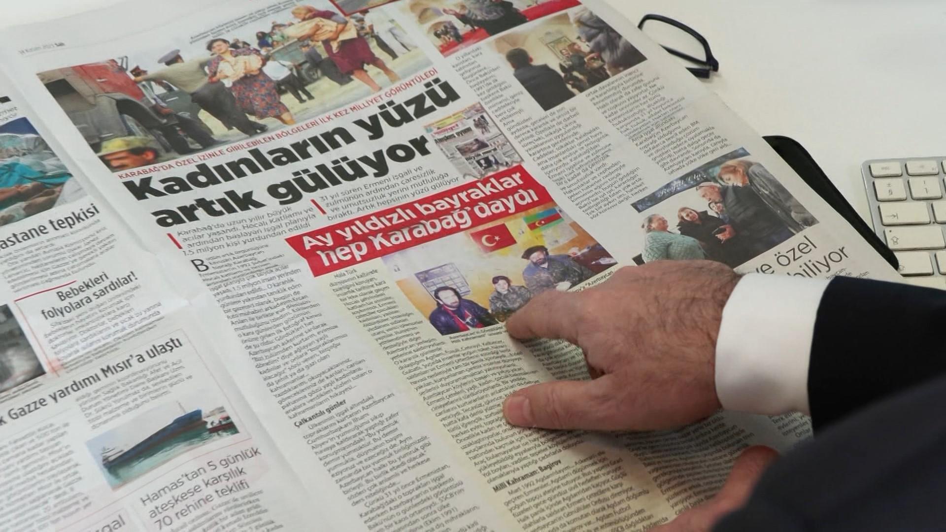 “Yani Karabağ işgal edilirken Şuşa, Füzuli, Terter, Kelbecer, Ağdam düşerken ben başından beri oradaydım. Oradaki bütün dramı o insanların kaçarken neler yaşadıklarını yokluğu, sefaleti hepsine bir gazeteci olarak tanıklık ettim. Buralara şu anda giriş yasak. Azerbaycan topraklarını geri aldı fakat Ermeniler her yere mayın döşedikleri için çoğu yer mayınlı arazi, o nedenle de güvenlik nedeniyle girişler yasak. Mayınlardan temizlenen yerlere belli miktarda girişler sağlandı. Bazı vatandaşlar evlerini görebilmek için özel izinle şimdi oralara gidiyorlar. Biz de Milliyet gazetesi olarak bu topraklarda ne oluyor? Ne bitiyor? göstermek istedik. Ben de özel izinle 30 sene önce gittiğim yerlere tekrar gittim ve neler yaşandığını bizzat gördüm. Şuna tanık oldum ki; kadınların yüzü gülüyor. Özellikle kadınlar burada çok önemli. Çünkü Ermeniler özellikle kadınları ve çocukları katlediyorlardı, tecavüz, öldürme gibi çok büyük işkenceler yapıyorlardı, o dönem kadınlar çok acı çekti. Bu sefer gördük ki kadınların hepsinin yüzü gülüyor. Biz burada iki fotoğrafı yan yana görüyoruz. Bizim yazı dizimizde iki fotoğraf göreceksiniz. Yazı dizimiz Milliyet Gazetesi'nde bugün başladı, 6-7 gün süreyle devam edeceğiz. Burada ki amacımız da şu; çekilen o dramı göstermek, sonra da bugün ki gülen yüzleri göstermek. Aynı zamanda en güzel tarafı da şu Karabağ'ın her yerinde, Azerbaycan topraklarına girdiğiniz andan itibaren Azerbaycan ve Türk bayrakları yan yana dalgalanıyor. Çünkü başından beri Türkiye kardeş Azerbaycan'ın yanında durdu.”