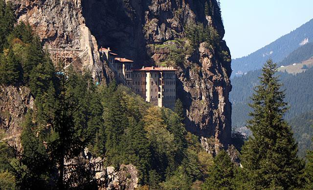 Maçka'da Karadağ'ın Altındere Vadisi'ne bakan eteğinde, yaklaşık 300 metre yükseklikteki ormanlık alanda kayaların oyulmasıyla yapılan Sümela Manastırı, halk arasında 'Meryem Ana' adıyla da biliniyor. Hakkında çeşitli rivayetler de bulunan ve kuruluşu bilimsel verilere göre 13'üncü yüzyıla uzanan tarihi manastırda, hizmet birimleri, misafirhane, mutfak ve ayazmanın dışında toplam 72 oda bulunuyor. 88 yıl aranın ardından manastırda 2010 yılında ise binlerce kişinin katılımıyla düzenlenen ayini Fener Rum Patriği Dimitri Bartholomeos yönetmişti. Sümela Manastırı'nda, 3 yıldır süren restorasyon çalışması sırasında kuzey çatının üst sağ yamacında tespit edilen ve bugüne kadar girilmemiş gizli bir geçitle ulaşılan alan gün yüzüne çıkarılmıştı. Şapel olduğu belirlenen bölümün gün yüzüne çıkarılması ve ziyarete açılması için çalışmalar sürüyor.
