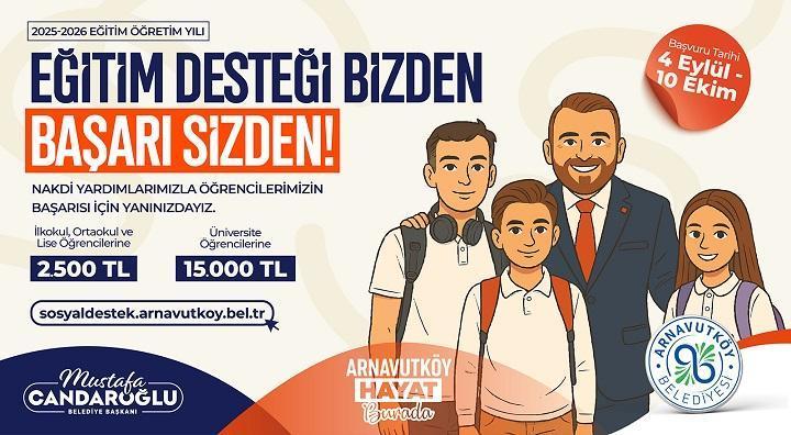 Arnavutköy Belediyesi, 2025-2026 eğitim-öğretim yılında öğrencilerin eğitim hayatına katkı sağlamak amacıyla toplam 60 milyon TL değerinde nakdi destek programını hayata geçirdiğini duyurdu. İlkokul, ortaokul ve lise öğrencilerine 2.500 TL, üniversite öğrencilerine ise 15.000 TL tutarında eğitim bursu desteği verilecek.