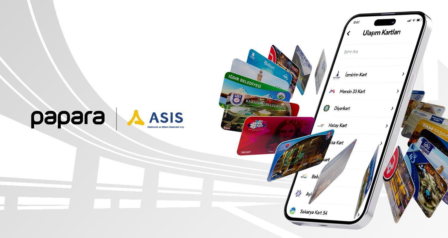 Papara'nın Asis Elektronik iş birliğiyle ‘Ödemeler’ menüsüne eklediği ‘Ulaşım Kartları’ adımında yer alan ve kullanıcıların 7 gün 24 saat ulaşım kartı yüklemesi yapabilecekleri şehirler ise Adıyaman, Ağrı, Aydın, Balıkesir, Çorum, Diyarbakır, Elazığ, Hatay, Mersin, Kütahya, Malatya, Manisa, Muş, Sakarya, Samsun, Siirt, Trabzon, Van, Karaman, Batman, Iğdır, Şanlıurfa ve İzmir olarak sıralandı. Bu sayede akıllı ulaşım kartlarına bakiye yüklemek için dolum noktalarına gitme zorunluluğu ortadan kalktı.