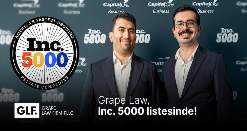 ABD'de göçmenlik hukuku alanında faaliyet gösteren Grape Law, girişimcilik ekosisteminin nabzını tutan Inc. dergisinin ‘Inc. 5000’ listesine girdiğini duyurdu. Son üç yılda elde ettiği büyüme oranıyla genel sıralamada 161'inci olan şirket, hukuk sektöründe hizmet verenler arasında ise 4'üncü sıraya yerleştiğini aktardı. Daha önce ABD Ticaret Odası tarafından Amerika'nın en iyi 100 KOBİ'sinden biri ve Kuzeydoğu Amerika'nın en hızlı büyüyen şirketleri arasında beşinci seçilen Grape Law, bu başarısıyla yükselişini sürdürdüğünü bildirdi.