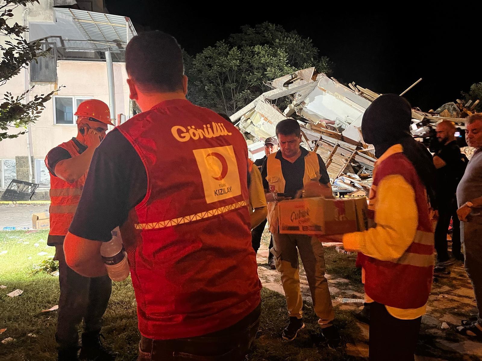 Kızılay; 30 araç, uzman ekipleri ve gönüllüleriyle hem depremden etkilenen vatandaşlara hem de gece boyunca görev yapacak arama-kurtarma ve sağlık ekiplerine sıcak yemek, içecek ve temel gıda ikramı yaptı.