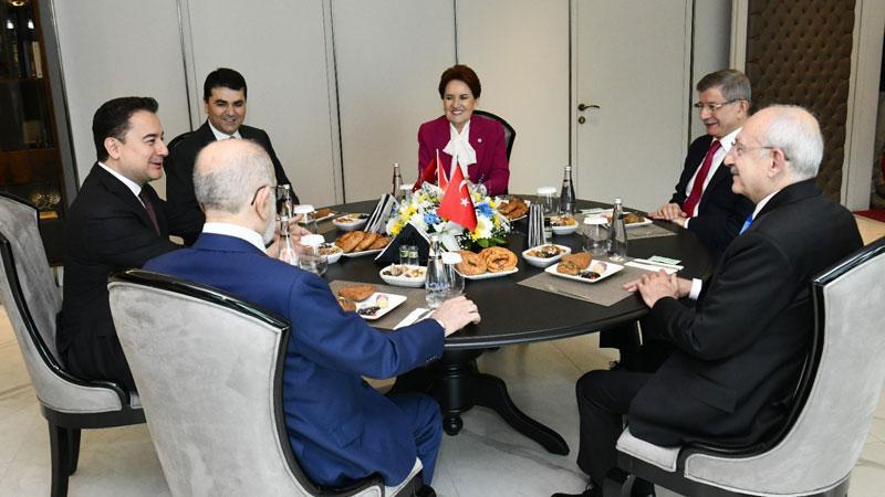 CHP Genel Başkanı Kemal Kılıçdaroğlu, DEVA Partisi Genel Başkanı Ali Babacan, Demokrat Parti Genel Başkanı Gültekin Uysal, Gelecek Partisi Genel Başkanı Ahmet Davutoğlu, Saadet Partisi Genel Başkanı Temel Karamollaoğlu ve İYİ Parti Genel Başkanı Meral Akşener, saat 12.00'de İYİ Parti Genel Merkezi’nde bir araya geldi. İYİ Parti Genel Başkanı Meral Akşener, diğer genel başkanları kapıda karşıladı. Basına kapalı gerçekleşen toplantının ardından, genel başkanların imzasıyla ortak bildiri yayımlanması bekleniyor.
