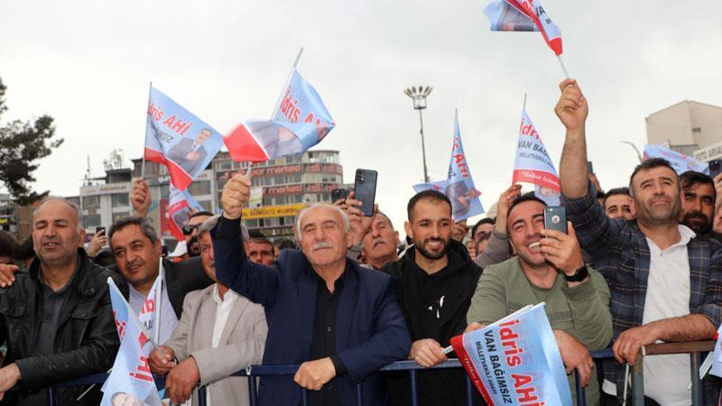 Van'da 4 dönemdir bağımsız milletvekili adayı olan esnaf İdris Ahi, 14 Mayıs'ta yapılacak 28. Dönem Milletvekili ve Cumhurbaşkanlığı Genel seçimleri öncesi miting yaptı. Kentin Beşyol Meydanı'nda düzenlenen mitingi için polis, barikat kurup, önlem aldı. Alanda kurulan sahneye çıkıp, gelenleri selamlayan Ahi, barikat dışında kendisini izleyenleri de alana davet etti. Konuşması sırasında sık sık 'ver coşkuyu' deyip açılan müzik sesi eşliğinde sahnede zıplayarak oynayıp, Kürtçe şarkı söyleyen Ahi, mitingine gelenleri güldürdü.