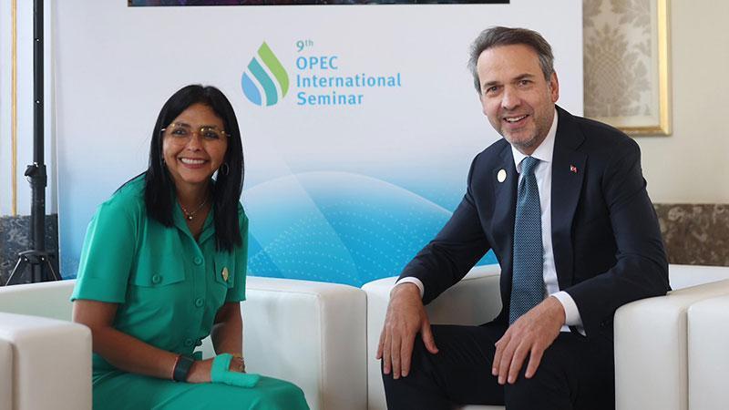 Enerji ve Tabii Kaynaklar Bakanı Alparslan Bayraktar, Avusturya'nın başkenti Viyana'da düzenlenen 9'uncu OPEC Uluslararası Semineri'ne katıldı. Bakan Bayraktar, buradaki temasları kapsamında Venezuela Başkan Yardımcısı ve Petrol Bakanı Delcy Eloina Rodriguez Gomez ile görüştü. Bayraktar, görüşmeye ilişkin sosyal medya hesabından yaptığı paylaşımda, “9’uncu OPEC Uluslararası Semineri marjında Venezuela Başkan Yardımcısı ve Petrol Bakanı Sayın Delcy Eloina Rodriguez Gomez ile bir araya geldik. Geçtiğimiz yıl Karakas’ta imzaladığımız mutabakat zaptı çerçevesinde doğal gaz ve petrol aramacılığı, üretimi ve ticareti alanlarında yeni iş birliği olanaklarını değerlendirdik. Venezuela ile enerji alanındaki ortak çalışmalarımızı somut projelerle ilerletmeyi hedefliyoruz” ifadelerini kullandı.