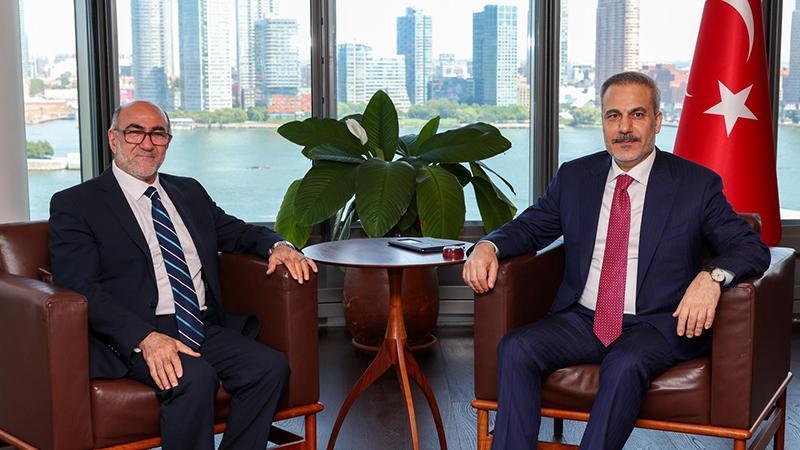 Dışişleri Bakanı Hakan Fidan, gayriresmi Kıbrıs toplantısı için bulunduğu New York’ta, ABD Müslüman Kuruluşlar Konseyi Başkanı Usame Cemal’i kabul etti. Görüşmeye ilişkin bakanlıktan fotoğraf paylaşıldı.