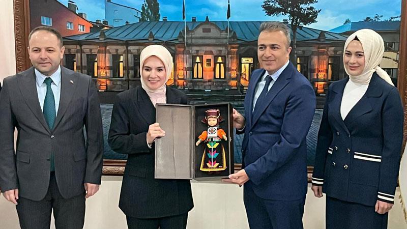 Aile ve Sosyal Hizmetler Bakanı Mahinur Özdemir Göktaş, Ardahan programından sonra Ağrı’ya geçti. Valiliği ziyaret eden Göktaş’ı Vali Mustafa Koç, AK Parti Milletvekili Ruken Kilerci ve AK Parti İl Başkanı İlhami Yıldız karşıladı. Valilik şeref defterini imzalayan Bakan Göktaş, kentin sorunlarıyla ilgili brifing aldı. Toplantı sonrası Valilikte basın mensuplarına açıklamada bulunan Bakan Göktaş, şehirlerin ihtiyaçlarını yerinde görerek bakanlığın çalışmalarını değerlendirdiklerini söyledi. Göktaş, “Aile Yılı kapsamında yapılan çalışmaları değerlendirdik. Aynı zamanda yapılan yatırımların durumu ve mevcut ve yeni yatırımları da ele alma imkanı bulduk. Biz vatandaşlarımızın yaşam kalitesini yükseltecek projeler yürütüyoruz. Aynı zamanda bu ziyaretler bizleri kuruluşlarımızın mevcut durumunu ele almak adına da önemli bir fırsatlar sunuyor. 23 yıldır sosyal devlet anlayışını güçlendirmek için çalışıyoruz. Sayın Cumhurbaşkanımızın liderliğinde insanı merkeze alan politikalar yürütüyoruz. Her bireyin sosyal refahını çok önemsiyoruz. Dolayısıyla bizim de çalışmalarımız çok çeşitli. Her bireyin sosyal refahını yükseltirken kadınların, çocukların, engellilerin, yaşlıların ve ihtiyaç sahibi her bir vatandaşımızın yanında yer alıyoruz” diye konuştu.
