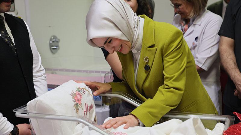 Aile ve Sosyal Hizmetler Bakanı Mahinur Özdemir Göktaş, yılın son gününde doğan bebekleri ve anneleri ziyaret edip altın hediye etti.