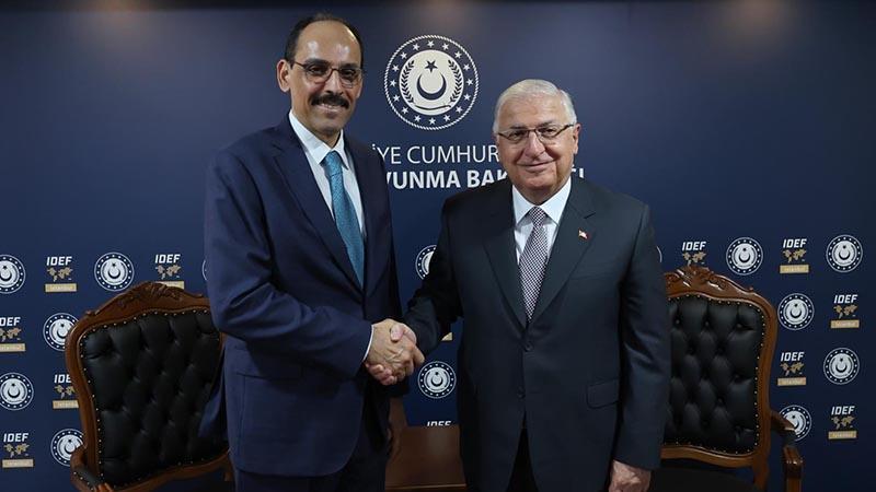 Milli Savunma Bakanı Yaşar Güler ile Milli İstihbarat Teşkilatı Başkanı İbrahim Kalın, 17. Uluslararası Savunma Sanayii Fuarı'nda (IDEF 2025) bir araya geldi.