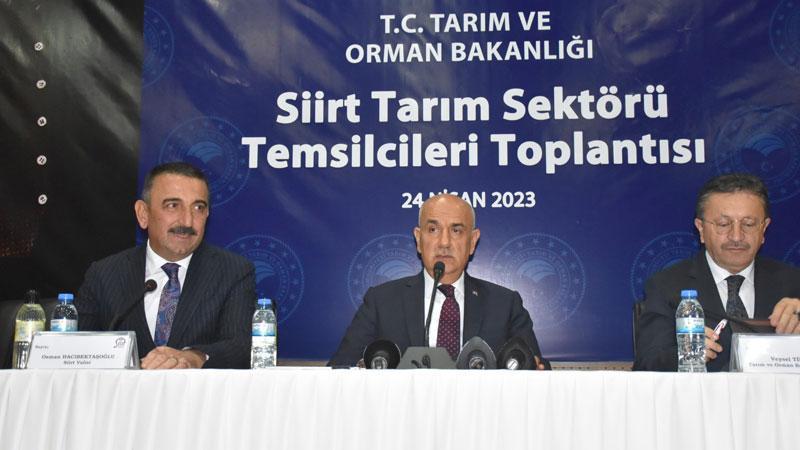 Bakan Kirişci, bir dizi temas ve ziyaretlerde bulunmak üzere Siirt'e geldi. Siirt Valiliği'ni ziyaret eden Kirişçi, Vali Osman Hacıbektaşoğlu'ndan bilgi aldı. Kentteki tarım ürünlerine ilişkin stantları gezen Kirişci, daha sonra tarım sektörü temsilciler ile buluştu. Burada konuşan Kirişci, tarım sektöründe 30 milyar dolarlık ihracatın yapıldığını belirterek, "Bu ülkede 2002 yılında tarım sektöründe 3,8 milyar dolarlık ihracat vardı. Şu an 30 milyar doları yakaladık. 6 milyar doları da bu sene yakalarız. 2002 yılında tüm Türkiye'nin ihracatı 36 milyar dolardı; bugün sadece tarım sektörü ile ilgili düzeyde 30 milyar dolara geldik. Genel ihracat 254 milyar dolar. Bu ülkenin 9,9 milyon olan büyükbaş hayvan sayısı, şu anda 17 milyon. Geçtiğimiz yıla göre; sayıda bir miktar düşüş var. Son 20 yılda küçükbaş da 32 milyondan, 56,3 milyona çıktı" dedi.