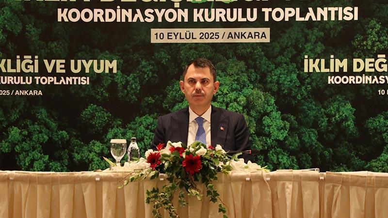 Bakan Kurum, Ankara'da otelde gerçekleştirilen İklim Değişikliği ve Uyum Koordinasyon Kurulu (İDUKK) toplantısında konuştu. Kurum, "İklim krizi; dünyamızın ve insanlığın en önemli sorunlarından biri olmaya devam ediyor. Bilimsel veriler de bu sorunu tüm açıklığıyla ortaya koyuyor. Sadece son 50 yılda bile, yaban hayatı popülasyonu tam yüzde 73 oranında azaldı. Bu, yaklaşık 1 milyon türün tamamen yok olma tehdidi altında olduğunu gösteriyor. Tatlı su kaynaklarımız, her geçen gün azalıyor. Dünya nüfusunun yüzde 75’i yani yeryüzündeki her 4 kişiden 3'ü, susuzluk tehlikesi altında yaşıyor. Rakamların bize işaret ettiği bu acı tabloya rağmen ne yazık ki, insanlık her 10 dakikada, 5 bin 900 ton plastik atık üretmeye devam ediyor. Milyonlarca insan açlıkla boğuşurken, dünyada her gün yaklaşık 1 milyar öğün gıda göz göre göre çöpe gidiyor. Ancak hepimiz çok iyi biliyoruz ki; iklim krizi ne raporlardaki rakamlardan ne de kürsülerde konuşulan analizlerden ibarettir. Son 50 yılda hava, iklim ve suyla bağlantılı 11 binden fazla afet kayıtlara geçmiştir. 2 milyonun üzerinde can kaybı ile 3,64 trilyon dolarlık ekonomik kayıp gerçekleşmiştir. Küresel çapta yaşanan sorunların fotoğrafı bu şekildedir” ifadelerini kullandı.