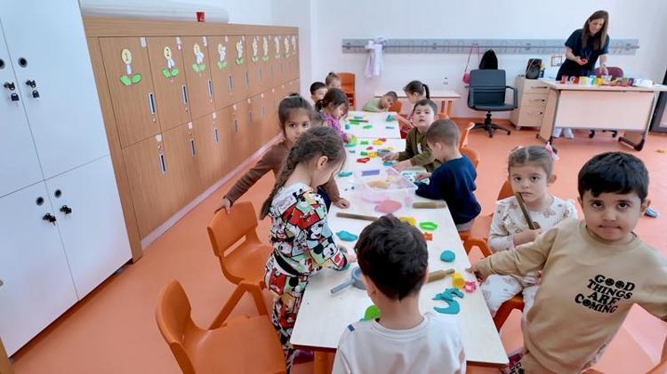 Videoda, 1.183’ü konut, 1.595’i iş yeri olmak üzere toplam 2 bin 778 bağımsız bölümün yapıldığı Azerbaycan Mahallesi ve o mahalledeki Haydar Aliyev İlkokulu’nda eğitim alan öğrenciler ile Ebrar Sitesi'nin görüntüleri yer alıyor.