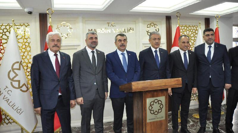 Milli Eğitim Bakanı Yusuf Tekin, Mardin'deki ziyaretlerin ardından İl Eğitim Değerlendirme Toplantısı’na katıldı. Toplantıya Vali Tuncay Akkoyun, AK Parti Mardin Milletvekilleri Faruk Kılıç ve Muhammed Adak, AK Parti Mardin İl Başkanı Mehmet Uncu, İl Milli Eğitim Müdürü Ali Eyyüpkoca ve ilçe milli eğitim müdürleri de katıldı. Toplantının ardından açıklamalarda bulunan Bakan Tekin, eğitim-öğretim yatırımları açısından devrim niteliğinde işlerin yapıldığını ifade ederek, “Dün biz Türkiye Büyük Millet Meclisi'nde Milli Eğitim Bakanlığımızın ve bizimle birlikte çalıştığımız Yükseköğretim Kurumu, Üniversiteler, Ölçme, Değerlendirme ve Sınav Hizmetleri Merkezi ÖSYM ve Yüksek Öğretim Kalite Kurulu'nun bütçesini Türkiye Büyük Millet Meclisi'nde Plan Bütçe Komisyonu'nda komisyon üyesi çok değerli milletvekillerimizle çok uzun bir mesainin sonunda tartıştık. Bu faslı açma sebebim şu. Orada görüşleriyle, önerileriyle, yorumlarıyla bize ufuk açan milletvekillerimize teşekkür ediyorum. Biz de bu vesileyle yapmak istediklerimizi ve yaptıklarımızı Türkiye Büyük Millet Meclisi ile paylaşmış olduk Plan Bütçe Komisyonu'nda. Bütçemiz eğitim öğretim ailemize, ülkemize, milletimize hayırlı olsun. İnşallah aralık ayının ilk yarısında da Türkiye Büyük Millet Meclisi Genel Kurulu'nda bütçe takviminin bize sunulduğu günde bütçemizi Genel Kurul'da da sunup onaylanmasını ardından da faaliyetlerimize devam etmemizi heyecanla bekliyoruz. Ben tekrar başta Sayın Cumhurbaşkanımız olmak üzere emeği geçen herkese teşekkür ediyorum. Türkiye'de Sayın Cumhurbaşkanımızın başbakan olduğu tarihten itibaren eğitim-öğretim yatırımları açısından baktığımızda gerçekten devrim niteliğinde işler yapıldı, yapılmaya da devam devam ediyor” dedi.