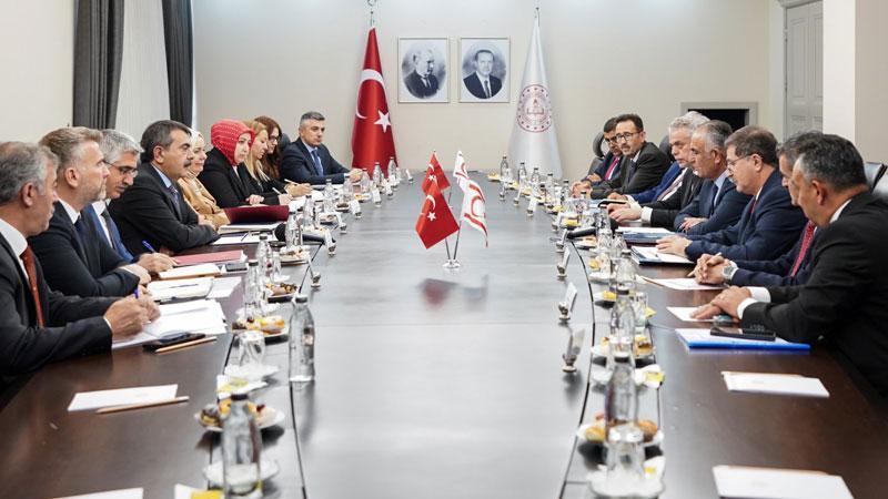 Bakanlıktan yapılan açıklamaya göre, görüşme, Milli Eğitim Bakanlığı (MEB) Tevfik İleri Salonu'nda gerçekleşti. Görüşmede Bakan Tekin, Milli Eğitim Bakanı olarak göreve geldikten sonra ilk ağırladıkları heyetin KKTC heyeti olduğunu belirterek, bundan büyük mutluluk duyduğunu söyledi. Tekin, MEB olarak KKTC ile 'iki devlet tek millet' anlayışını sözde değil, özde hayata geçirmek istediklerini ve hükümetler arası ilişkilerin yanı sıra toplumlar arası ilişkilere de büyük önem verdiklerini ifade ederek, "Bir millet olma vasfını devam ettirmenin önemine çok inanıyorum. Bunu yapmamız gerekiyor. Bizim görevimiz aslında bir millet vasfının devam etmesini sağlamak. Bu konuda da bizim üzerimize düşen ne görev varsa yapmaya hazırız" dedi.