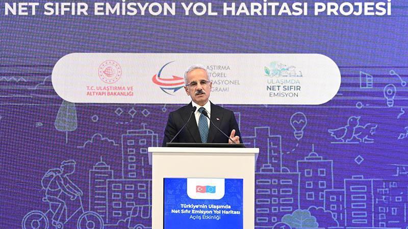 Ulaştırma ve Altyapı Bakanı Abdulkadir Uraloğlu, Ankara'daki bir otelde düzenlenen 'Türkiye'nin Ulaşımda Net Sıfır Emisyon Yol Haritası Projesi'nin tanıtım etkinliğine katıldı. Etkinlikte konuşan Bakan Uraloğlu, günümüzde ulaşım sektörünün, küresel sera gazı emisyonlarının yüzde 21,11'ini ulaştırma sektöründe oluşturarak dünyada 3’üncü, yüzde 20’lik payıyla Türkiye’de ise 2’nci sırada yer aldığını söyleyerek, "Bu veriler, ulaşım sektörünün iklim değişikliğiyle mücadelede kritik bir rol üstlendiğini açıkça ortaya koymaktadır. Bu nedenle bugün, küresel iklim değişikliği ve doğal kaynakların sınırlılığı gibi gerçekler, ulaşım sektörünü değişime zorlamaktadır ve bunu zorunlu kılmaktadır. Bu kapsamda, bugün lansmanını gerçekleştirdiğimiz 'Türkiye’nin Ulaşımda Net Sıfır Emisyon Yol Haritası Projesi', bu sorumluluğun bilinciyle atılmış stratejik bir adım ve geleceğe dair güçlü bir vizyonun ve iradenin ifadesidir" diye konuştu.