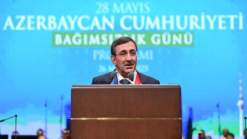 Azerbaycan'ın, Haydar Aliyev’in gösterdiği istikamet, İlham Aliyev’in kararlı liderliğiyle bölgesinde etkin ve saygın bir konum kazandığını belirten Cumhurbaşkanı Yardımcısı Cevdet Yılmaz, "Sayın Cumhurbaşkanımız Recep Tayyip Erdoğan ile Sayın Aliyev'in samimi ilişkiler, ülkelerimiz arasında yüksek düzeyli diyaloğu ve stratejik ortaklığı derinleştirmiştir. Özgür Karabağ'ın incisi Şuşa'da 15 Haziran 2021 tarihinde imzalanan beyanname ile müttefiklik seviyesine çıkmıştır. 'İki devlet, tek millet' anlayışı, kurumsal iş birlikleriyle günden güne daha da pekişmektedir. Doğunun en batısında, batının en doğusunda; tarihi ipek yolunun en stratejik konumlarında bulunan iki kardeş ülke olarak orta koridor vizyonunu paylaşıyoruz. Bölgemizin ulaşımdan sanayiye, savunma sanayiinden ticarete, elektronikten dijital dönüşüme kadar pek çok alanda entegrasyonuna öncülük ediyoruz. Eş başkanlığını Azerbaycan Başbakanı, kıymetli kardeşim Ali Esadov ile yürüttüğümüz Karma Ekonomik Komisyon aracılığıyla, geniş bir yelpazede, eylem planlarını hayata geçiriyoruz. 11'inci dönem toplantımızı geçtiğimiz yıl gerçekleştirdik, ilerlemeleri yakından takip ediyoruz. 2024 yılında toplam ticaret hacmimiz yaklaşık 8 milyar dolara ulaşmıştır. İkili ticaret hacmini 15 milyar dolar seviyesine ulaştırma hedefimize kararlılıkla ve planlı adımlarla ilerlemekteyiz. Bakü-Tiflis-Kars Demiryolu, Asya ile Avrupa arasında Türk dünyasını merkeze alan ulaştırma hattı olarak, bölgemizin bağlantısallığını güçlendirmiş; coğrafyalar arasında dostluk ve iş birliğini pekiştirmektedir. Bakü-Tiflis-Ceyhan Petrol Boru Hattı ise, Hazar’dan Akdeniz’e uzanan güvenli enerji koridoru olarak bölgesel istikrar ve iş birliğine katkılar sunmaktadır" dedi.