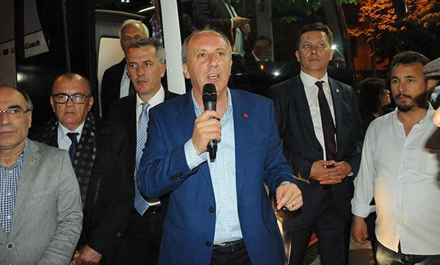 Burada köylülere seslenen İnce, "Gene geldik kürkçü dükkanına" diyerek espri yaptı. İnce, "Bugün Tuncelili gariban bir Kamer amca, bu gariban tapu memurunun oğlu Kemal Kılıçdaroğlu gereğini yaptı. Dedi ki, ‘Bizim adayımız Muharrem İnce.’ Şimdi bir bende iş var bir de sizde. Elmalıklı kamyoncu Şerif’in oğlu ile millette iş artık. Eğer bu durumdan memnunsa bu millet, dolar 5 liraya gidiyor, Euro 6 liraya gidiyor, 4 milyon Suriyeli, herkes yoksulluktan şikayetçi. Bakalım memnun mu, değil mi? Değiştirecek miyiz, değiştirmeyecek miyiz? Memleketin hali perişan herkes görüyor bunu. Elimizde böyle bir fırsat var. Bir kez böyle fırsat var. Bunalmış bir millet var. Her gün kavga eden bir cumhurbaşkanı var. Bize bir şey lazım. Huzur lazım bize, barış lazım. Bu huzuru sağlayacağız hep birlikte. Bu memlekette barışı sağlayacağız. Terörü bitireceğiz. İster PKK, ister IŞİD, ister FETÖ. Hangi terör örgütü olursa olsun canına okuyacağız. İkinci büyük hedefimizde yetimin hakkını yiyenlerden hesap soracağız. Bu ülkeyi soydurmayacağız. İhalelere fesat karıştırmayacağız. Garibanın hakkını yedirmeyeceğiz. Bunu yapacağız, bunu başaracağız. Önce içerde birlik, içerde dirlik. Sonra dünyaya da meydan okuyacağız. Bunu merak etmeyin ama içeride birliği sağlayamazsak, dirliği sağlayamazsak, dış politikayı, iç politika malzemesi haline getirirsek bu iş olmaz. Türkiye’nin bunu yapacak insan gücü var" dedi.