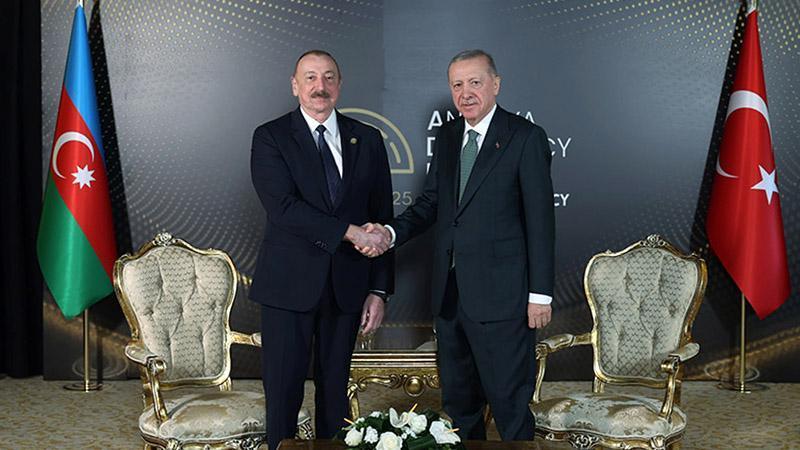 Cumhurbaşkanı Recep Tayyip Erdoğan, 4’üncü Antalya Diplomasi Forumu kapsamında Türkiye’de bulunan Azerbaycan Cumhurbaşkanı İlham Aliyev ile ikili görüşme yaptı. Cumhurbaşkanı Erdoğan, yine forum için Antalya'da bulunan Karadağ Cumhurbaşkanı Jakov Milatoviç ve Kosova Cumhurbaşkanı Vjosa Osmani-Sadriu ile de görüştü. Görüşmeler, basına kapalı gerçekleşti.
