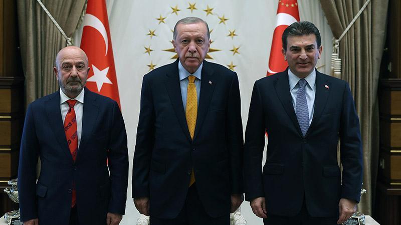 Cumhurbaşkanı Recep Tayyip Erdoğan, Ordu Yardımlaşma Kurumu (OYAK) Yönetim Kurulu Başkanı Zekai Aksakallı ve OYAK Genel Müdürü Murat Yalçıntaş'ı kabul etti.