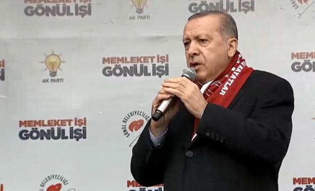 Sivas'ta AK Parti'nin, belediye başkanı adayını çekeceği yönündeki söylentilerin asılsız olduğunu kaydeden Erdoğan, "AK Parti, adayını çekecekmiş. Sakın bu dedikodulara, fitne, fesada aldanmayın. Biz sıradan bir mahalli partisi değiliz. Bu 16 yıl anlı şanlı yöneten, dünyada nam salan AK Parti'yiz. Bizim 'cumhur ittifakı'mızın iki ayağı vardır. AK Parti ve MHP. Başka parti yoktur. Bizimle rastgele bir resim çektirip, sağda, solda istismar edenlere inanmayın. Biz şu anda Rabb'im ömür verdikçe milletimize hizmette elimizden geleni yapmaya devam edeceğiz. Biz hep Sivas'a güvendik, hep yanında olduk. Bugün de Sivas'taki gardaşlarımızın muhabbetiyle yola çıktık. İlk mitingi niye Sivas'tan başlattık? 'Ya Allah, bismillah' dedik, buradan başlattık. Bugün bir kez daha Sivas'tan yola çıkarak, milletimizle kucaklaşıyor, hasret gideriyoruz" dedi.