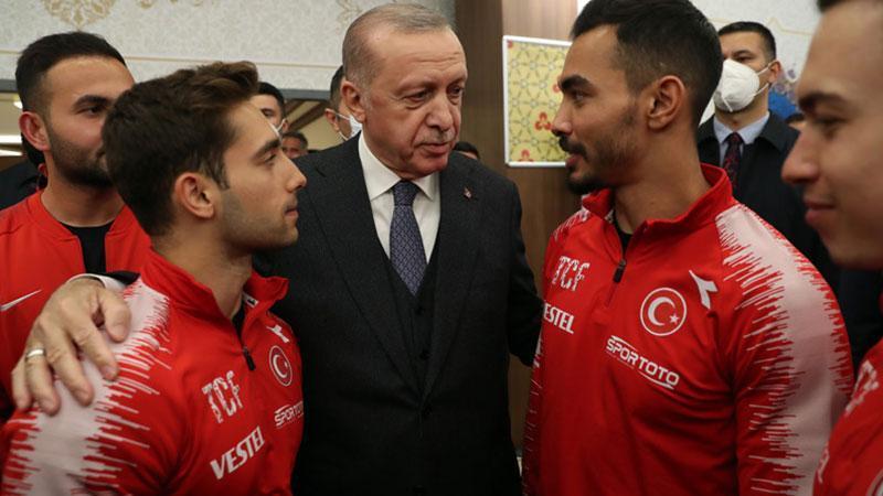 Erdoğan, bakanlık, belediyeler, valilikle, kulüpler el ele vererek bu doğrultuda seferberlik ruhuyla çalıştıklarına işaret ederek, "Bizler çalışıp evlatlarımızın önünde yeni kapılar açtıkça, sporun tüm branşlarında engelleri ortadan kaldırdıkça ülkemizin gençleri de o kapılardan koşarak yarınlara yürüyorlar. 81 vilayetimizde devam eden yatırımlarla Türkiye, sporda çok daha aydınlık başarılarla dolu bir gelecek ve potansiyel vadediyor. Sizler de kazandığınız madalyalarla, başarılarla, örnek duruşunuzla gençlerimize ilham kaynağı oluyorsunuz. İnşallah bu şekilde devam ettiğimizde madalya sayımızı katlayarak artıracağımıza inanıyorum. Sizlerden daha fazla çalışmanızı, hedeflerinize daha fazla odaklanmanızı bekliyorum. Zirveye giden zorlu süreçte biz de tüm imkanlarımızla siz sporcularımızın yanında olmayı sürdüreceğiz. Bu noktada başta Gençlik ve Spor Bakanım olmak üzere tüm ekibiyle bizler de sizlerin yanında çok daha yüksek performansla yürümeye devam edeceğiz. Nasıl şimdiye kadar başarı hikayelerini birlikte yaşamışsak 2024 Paris Olimpiyatları'nda da daha büyük başarılara birlikte imza atacağız. Gençliğinde sporla yakından ilgilenmiş, bugün de fırsat buldukça spor yapan bir Cumhurbaşkanı olarak sizlere inanıyor sizlere güveniyorum" dedi.