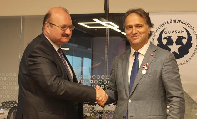 İSTİNYE Üniversitesi, Güvenlik ve Savunma Stratejileri Uygulama ve Araştırma Merkezi (GÜVSAM) Başkanı Dr. Öğr. Üyesi İsmail Safi, üniversitenin Topkapı Kampüsü'nde gerçekleşen törenle Rusya Palmyra Devlet Madalyası aldı. Safi, Rus vatandaşı olmadan bu madalyayı alan ilk kişi oldu.