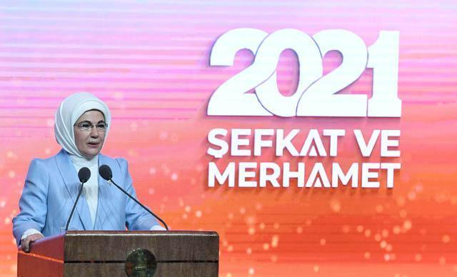 Dünyanın gittikçe bencilleşen, tüketmeyi bir alışkanlık haline getiren insan kalabalıklarıyla dolu olduğunu söyleyen Emine Erdoğan, "Sanayi devrimi dediğimiz şey, tabiata olduğu kadar insanın manevi tabiatına da büyük zararlar verdi. Teknolojik ilerlemeyle eş zamanlı olarak manevi ilerleme sağlayamıyoruz. İçinden geçtiğimiz bu salgın döneminde, vakıfları meydana getiren vicdana ve anlayışa ne kadar çok ihtiyacımız olduğunu şimdi daha iyi anlıyoruz. Neyse ki topraklarımızda, yardımlaşma ve dayanışma duygusu hala dipdiri. Denizlerimiz hâlâ, yapılıp atılmış iyiliklerle dolu" dedi.