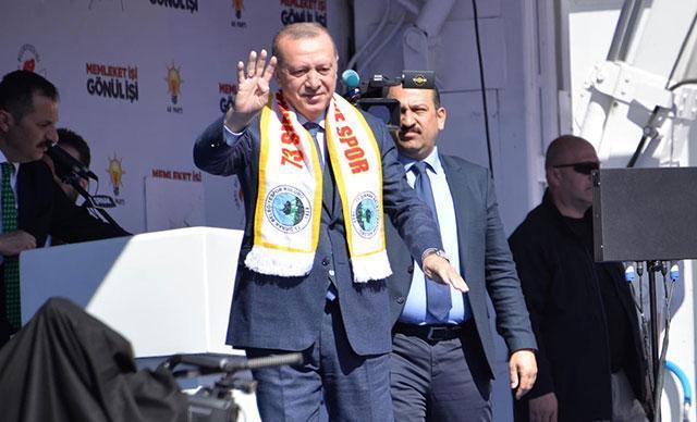 Erdoğan, konuşmasının sonunda kendisini dinlemeye gelenlere bez torbalarda çay dağıttı.