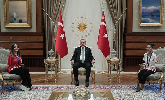 Erdoğan, milli sporcular Sümeyye ve Sevilay'ı kabul etti