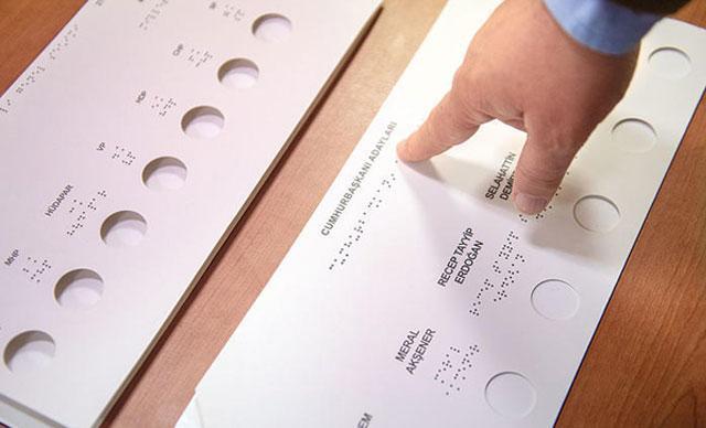 Engelsiz Erişim Derneği, görme engellilerin sandık başında refakatçisiz oy verebilmeleri için Boğaziçi Üniversitesi’yle sınırlı sayıda özel şablon hazırladı. Geçen iki seçimde bu şablon kullanıldı. Yerel seçimler için YSK özel şablona izin verdi ancak ’Ben bastırmam’ dedi.