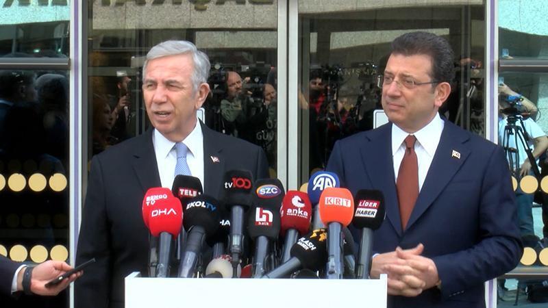 CHP'nin Cumhurbaşkanı adaylığını belirlemek için 23 Mart’ta yapılacak ön seçimde tek aday olan İstanbul Büyükşehir Belediye ve Türkiye Belediyeler Birliği Başkanı Ekrem İmamoğlu, Ankara'da gerçekleştireceği salon toplantısı öncesinde Ankara Büyükşehir Belediye Başkanı Mansur Yavaş’ı makamında ziyaret etti. Basına kapalı görüşmenin ardından İmamoğlu ve Yavaş, açıklama yaptı.