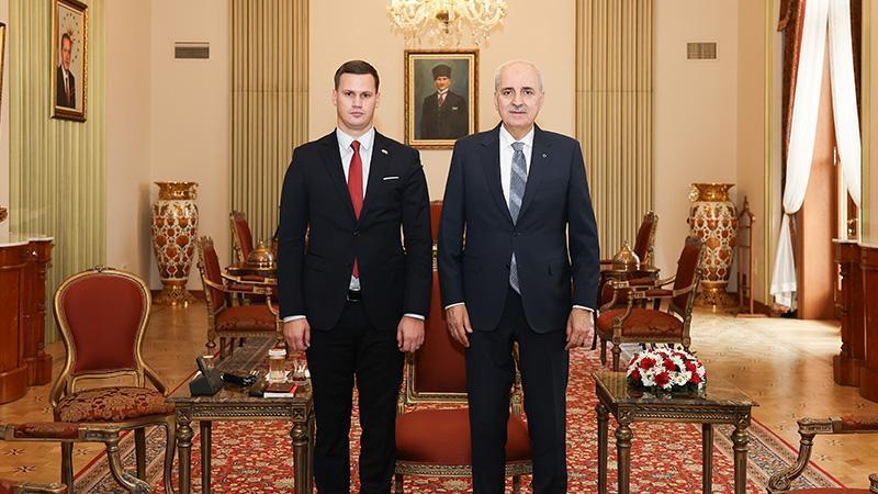 TBMM Başkanı Numan Kurtulmuş, Bosna Hersek Tuzla Kantonu Başbakanı İrfan Halilagic ile TBMM'deki makamında bir araya geldi.