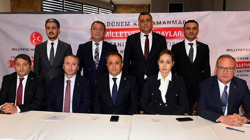 MHP'nin Yüksek Seçim Kurulu'na (YSK) sunduğu milletvekili aday listelerinde Kahramanmaraş'tan aday gösterilen Zuhal Karakoç Dora, Turan Şahin, Ertuğrul Doğan, Ömer Özkan, Aziz Kömürcü, Hüseyin Çiçek, Sermet Yıldız ve Mesut Çakar, düzenlenen bir toplantıyla partililere ve kamuoyuna tanıtıldı. Toplantının açılış konuşmasını yapan MHP Kahramanmaraş İl Başkanı Hüseyin Vahit Demiröz, 14 Mayıs'ta yapılacak seçimlerin hayırlara vesile olmasını temenni etti. Daha sonra milletvekili adayları sırasıyla bir konuşma yaptı.