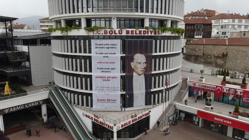 Bolu Belediye Başkanı Tanju Özcan, kentin en işlek noktası olan İzzet Baysal Caddesi’ndeki belediye binasına dev pankart astırdı. Demokrasi Meydanı’ndaki belediye binasının ön cephesine asılan Türkçe ve Arapça yazılı pankartta, “Vatanınızdan kaçıp ülkemize sığındınız. 11 yıldır sizi misafir ettik ama artık yeter. Huzurumuzu geri istiyoruz. Geldiğiniz gibi gidin hemen” ifadeleri yer aldı.