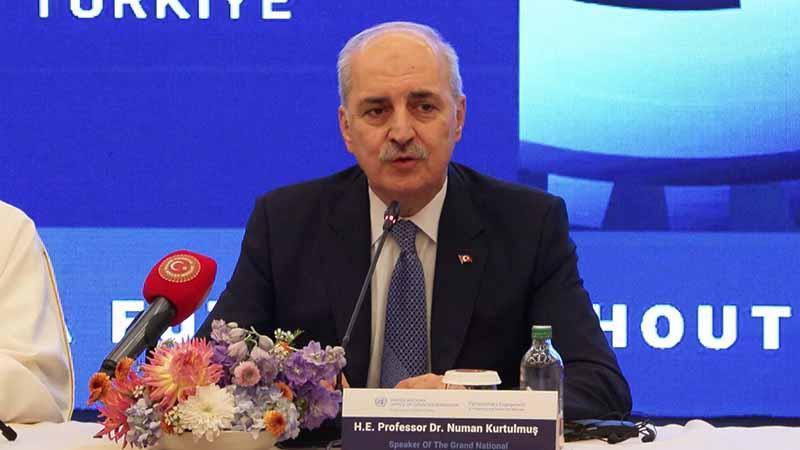 Terör örgütlerine verilen her türlü desteğin kesilmesi gerektiğini ifade eden TBMM Başkanı Numan Kurtulmuş, "Bugün terör sadece terör örgütlerinin elindeki silahtan ibaret değildir. Terörün maalesef özellikle son on yıllarda yeni ve farklı türleriyle karşımıza çıktığı aşikardır. Bunlardan iki tanesinin altını çizerek ifade etmek isterim. Maalesef 'Proxy War' diye bir kavram son birkaç on yılda ortaya çıktı. Vekalet savaşları aslında uluslararası ilişkilerde bazı ülkelerin kullandıkları bir uluslararası ilişkiler kartına dönüştürüldü. Terörü bu kadar büyüten, bu kadar destekleyen, terörü bu kadar şımartan önemli sebeplerden birisi, bazı ülkelerin vekalet savaşları adı altında kendi bir takım menfaatlerini sağlamak için Asya'da, Afrika'da, Orta Doğu'da, Latin Amerika'da dünyanın birçok yerinde terör örgütlerini silah vererek desteklemeleri, siyasi destek vererek desteklemeleri, lojistik destek vererek desteklemeleri ve nasıl kendi çıkarına zannettikleri terör örgütlerini silahlandırarak uluslararası alanda mevzi kazanma gayreti içerisinde olmalarıdır. Vekalet savaşları kavramı uluslararası ilişkiler tarihine bir kara leke gibi düşmüştür. Şunu yıllardır söylüyorum bir kere daha burada ifade etmek isterim. Büyük devletler, teröre destek veren, vekil örgütlerini destekleyen devletler, eğer bu vekil örgütlerine destek vermeyi, silah vermeyi, siyasi destek sağlamayı, lojistik destek sağlamayı bıraksınlar, 1 hafta içinde, 10 gün içinde dünyanın hiçbir yerinde terör örgütü kalmaz. Mesele bu kadar açık bir vaziyettedir. Bu uluslararası platformdan açıkça çağrıda bulunuyorum. Ne gerekçeyle olursa olsun, ellerini rahatlatmak için, kendi dış politikalarını desteklemek için, silahlı gruplara silah desteği veren, her türlü desteği veren ülkeler bu destekleri vermeyi sonlandırmalıdır" dedi.