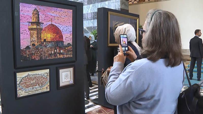 TBMM ile Türk Kızılay iş birliğinde Meclis Şeref Holü'nde 'Gazze' konulu, 'Hilalin Işığında' sanat sergisi açıldı.